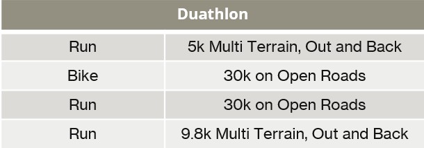 Duathlon awards may vary depending on level of entries.