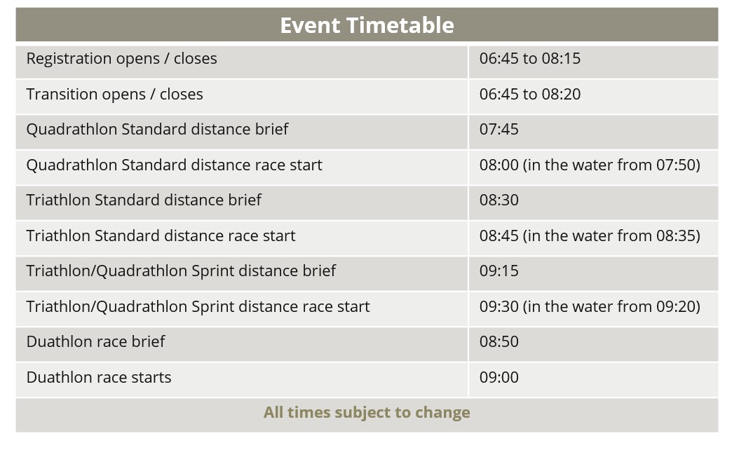 We are pleased to host both the Standard Distance and the Sprint Distance events as well as a Duathlon.